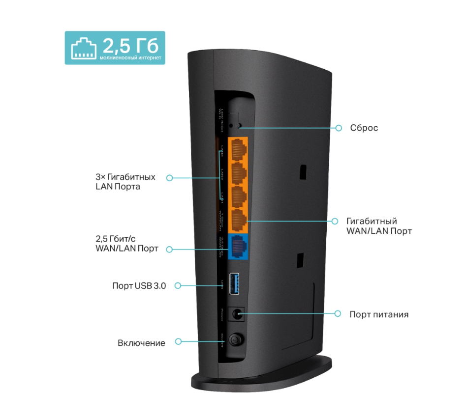 В наличии порт WAN/LAN 2,5 Гбит/с, который позволяет обеспечить максимальную пропускную способность для проводных устройств, таких как ПК, телевизоры и игровые приставки. - Расширение покрытия с Mesh