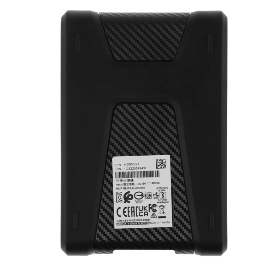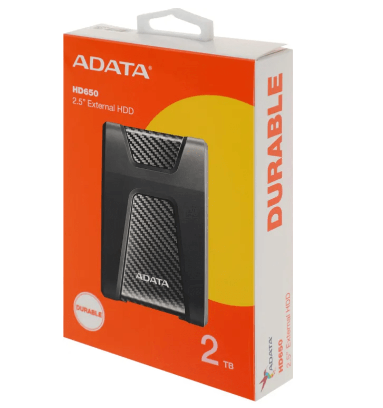 Внешний жёсткий диск ADATA DashDrive Durable HD650, 2 ТБ, USB 3.1 (AHD650-2TU31-CBK)
