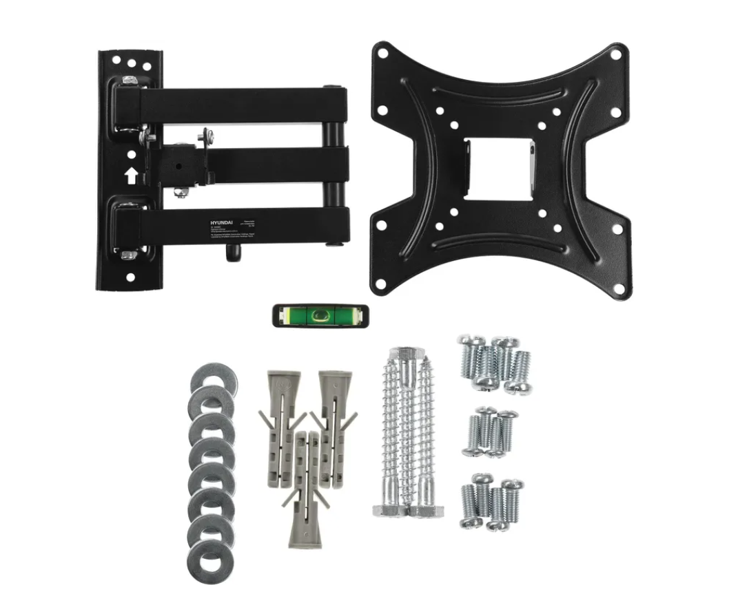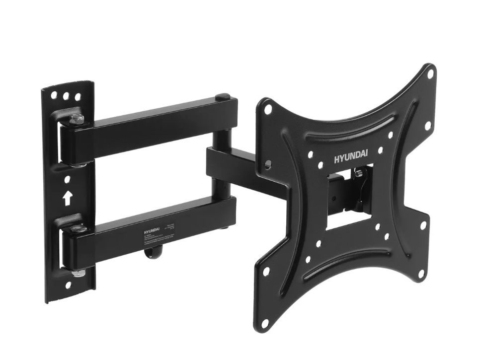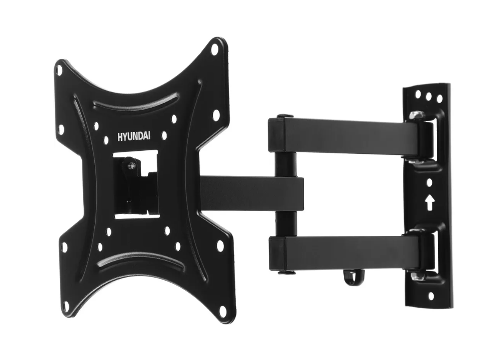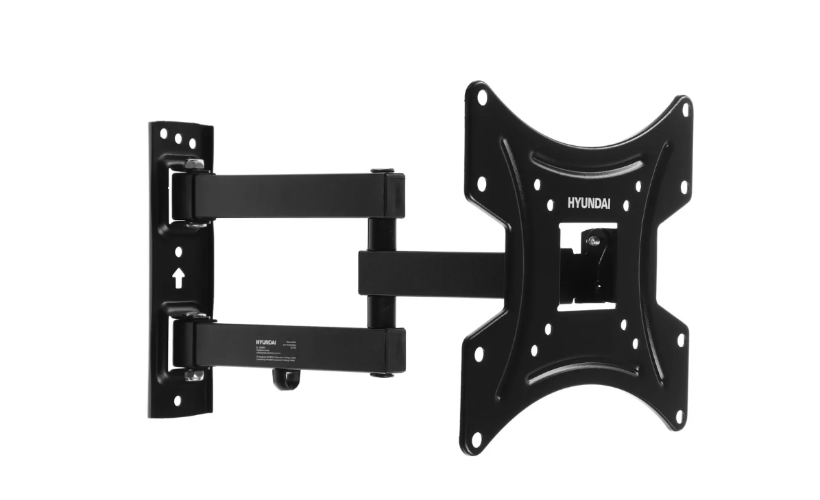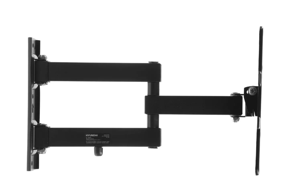 Конструкция кронштейна Hyundai GL-N2 с двумя коленами также позволяет поворачивать телевизор до 90 градусов влево и вправо. В сочетании со способностью наклона на -5/+15 градусов это позволяет всегда подобрать оптимальный угол обзора экрана вне зависимости от местоположения телевизора.