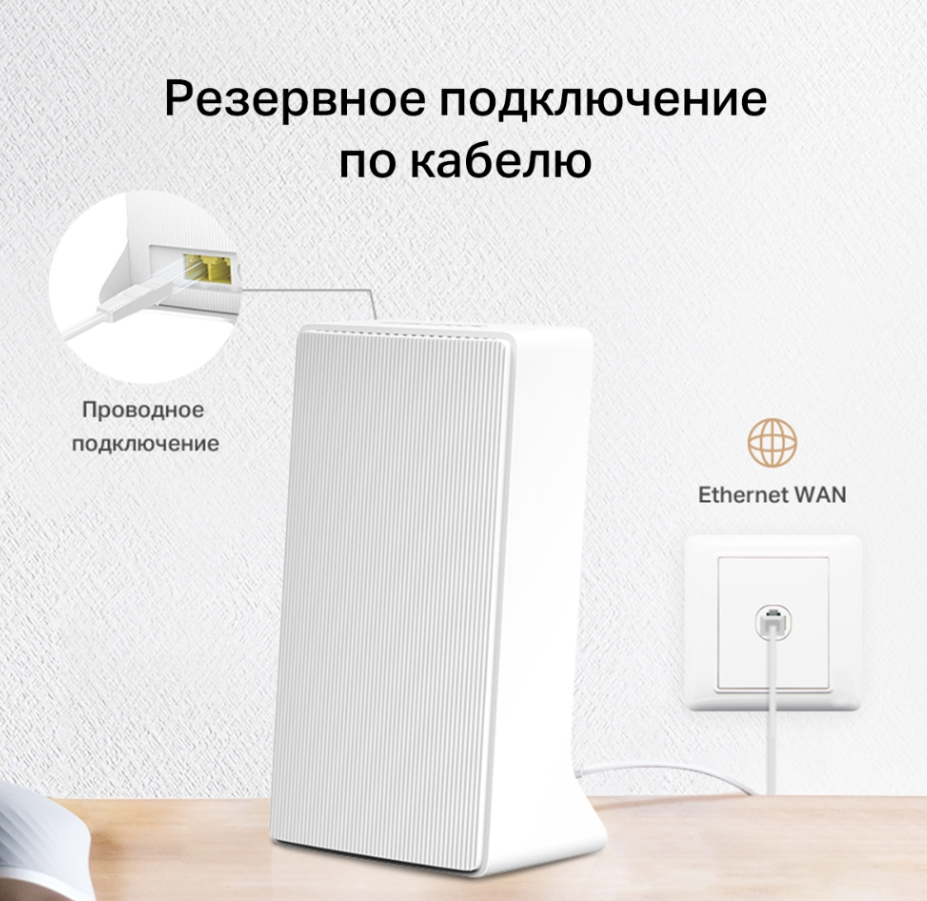 - Резервное подключение — если сеть 4G недоступна, можно подключить устройство к интернету по кабелю Ethernet.