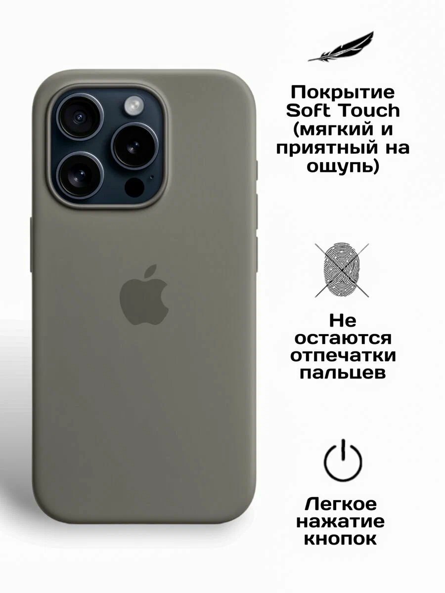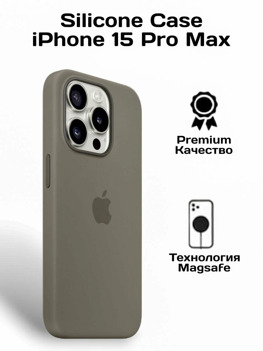 Накладка Silicone Case for iPhone 15 Pro Max без логотипа светло-серый