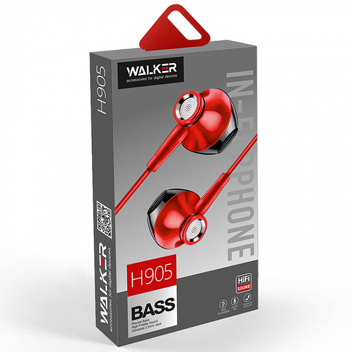 Наушники WALKER H905 с микрофоном не вакуум. красные