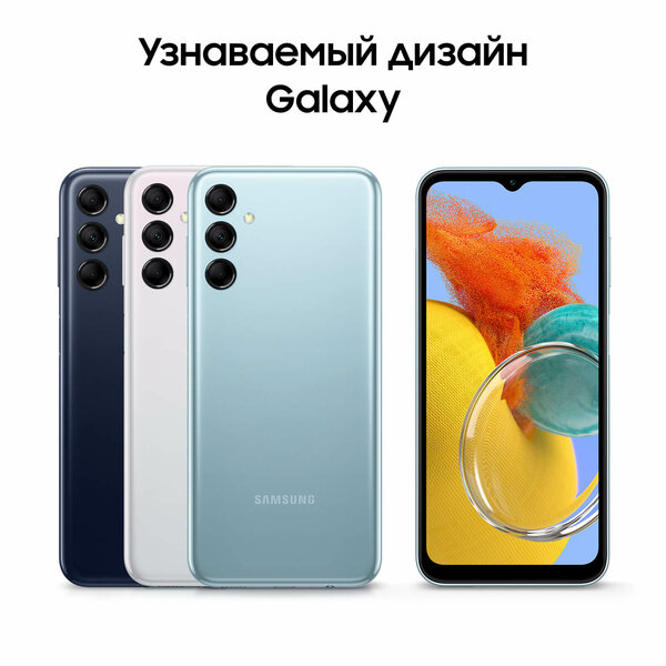 Смартфон Samsung Galaxy M14 – это идеальное сочетание стиля и функциональности. Обладая элегантным голубым корпусом, этот смартфон привлекает внимание своим современным дизайном.