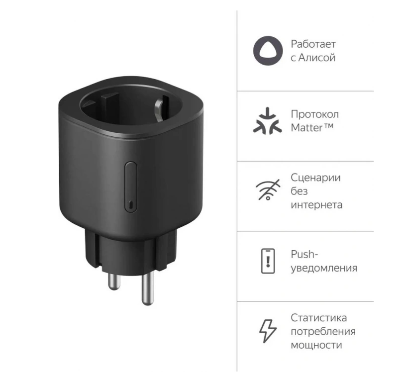 Розетка YNDX-00540BLK делает бытовую технику умной и дает возможность управлять режимами работы через приложение. Подключается к станции или хабу по протоколу Matter.