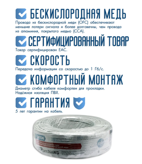 Витая пара UTP cat5e 26AWG 4 пары. Медь (Cu) 50 м